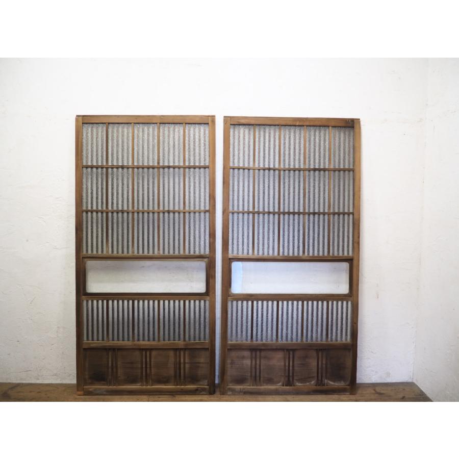 ガラス戸棚 木製 引き戸 磨りガラス 古家具 古道具 アンティーク 昭和レトロ タE0578◇【H176cm×W87cm】×2枚◇アンティーク◇格子デザインの古い