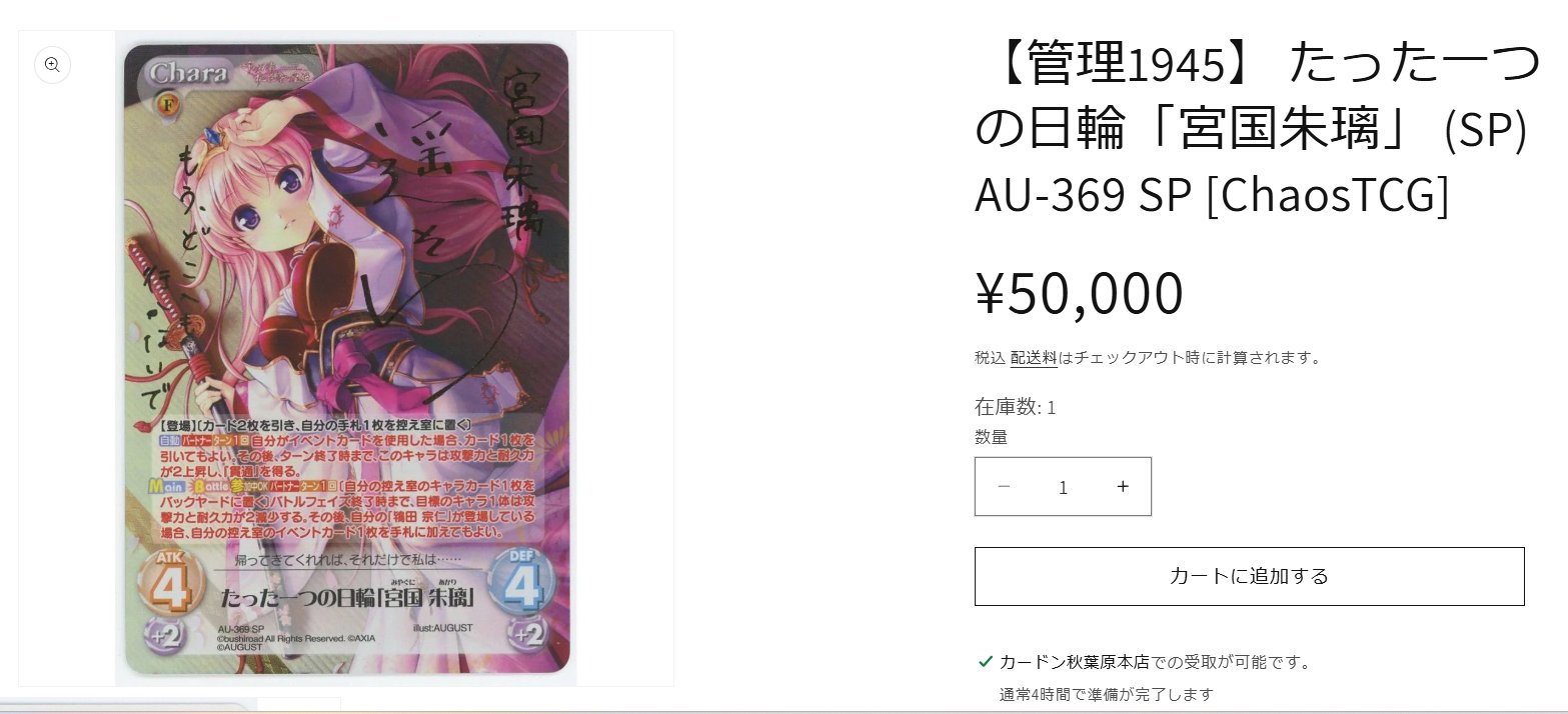 | メーカー | chaosTCG たった一つの日輪「宮国朱璃」 SP |