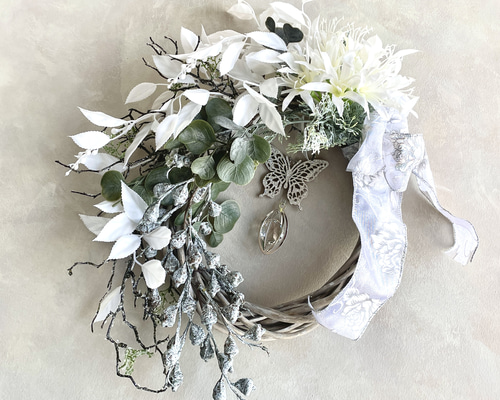 - 季節・年中行事 > クリスマス > クリスマスリース シルバーとホワイトの輝き クリスマスギフト アートフラワー クリスマスリース シルバーとホワイトの輝き クリスマスギフト アート