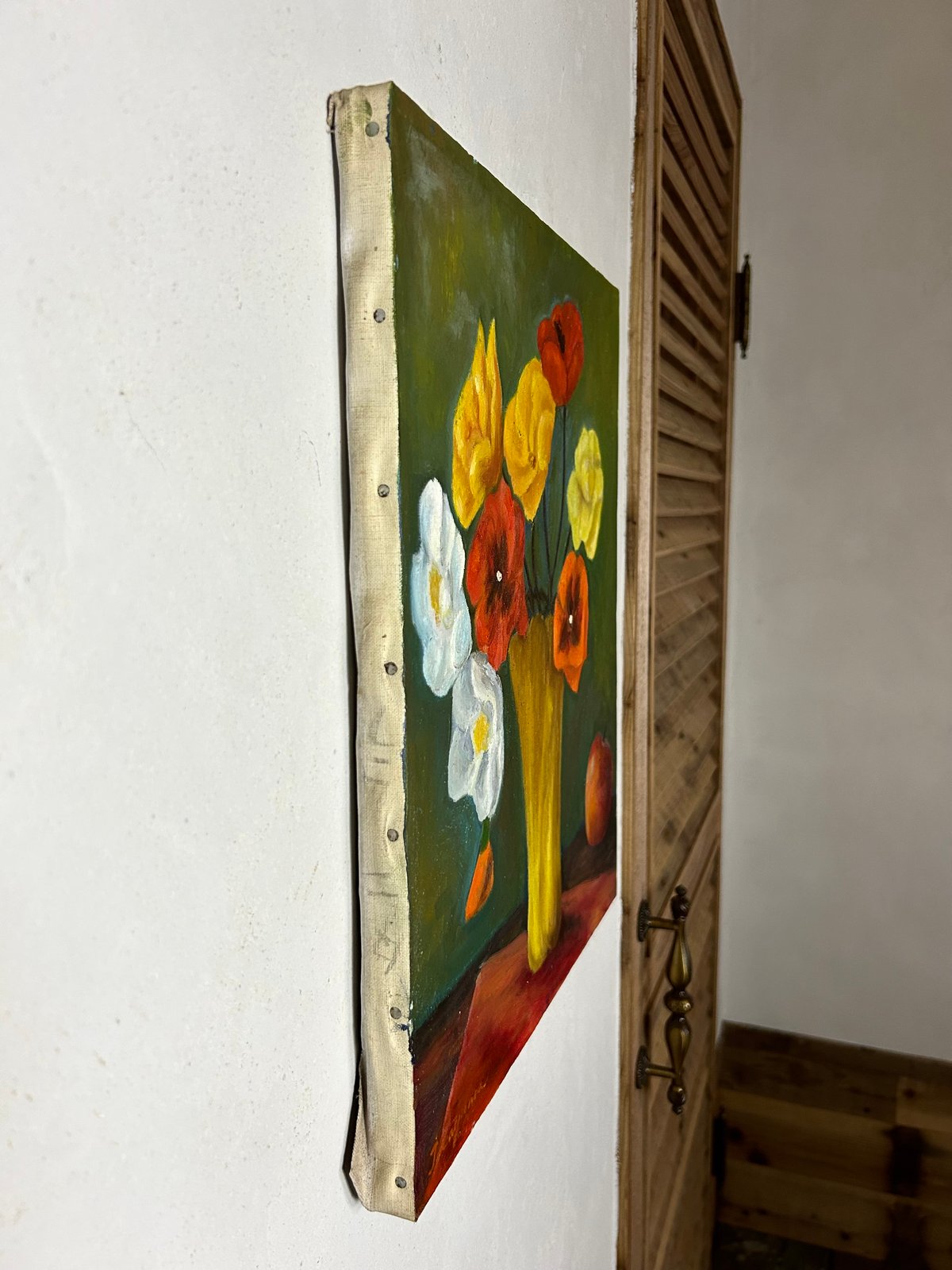 | 商品の特徴 | 明治時代から祖父の家にあった油絵 明治時代から祖父の家。明治時代から祖父の家にあった油絵 明治時代から祖父の家にあった油絵。明治時代から祖父の家にあった油絵 明治時代から祖父の家にあった油絵。#alafiaのvintage小物出品一覧はこちらどうやら明治時代から祖父の家にあった、板に描かれた油絵です。作家物なのか、誰かが趣味で描いたのかわかりませんが、額には入った味わい深いものです。赤い家 文化遺産オンライン。サインはyoshidaと入っています。芳年 牡丹に蜂掛軸 H70。緑川広太郎 油彩画。絵のサイズは32✕23cm額サイズは44✕35✕3cm#油絵#呪物 | ||