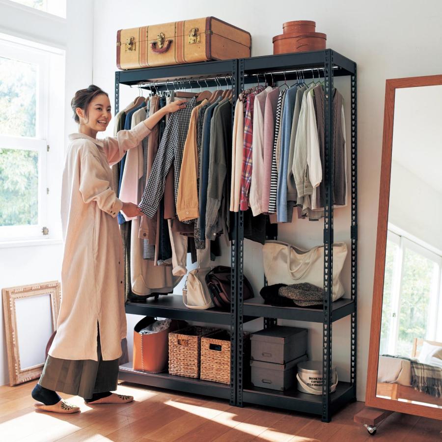 - 棚・ラック・シェルフ > スチールラック・メタルラック > ハンガーラック ライトナチュラル 幅90cm ユニットシェルフ 無印 ベルメゾン ハンガーラック ライトナチュラル 幅90cm ユニットシェルフ 無印
