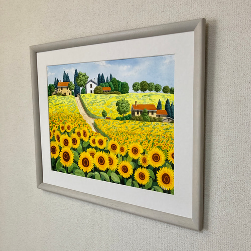 | メーカー | 透明水彩画 原画 「ひまわりの丘06」額縁付 SMサイズ 風景画 ひまわりの丘07」透明水彩画 |