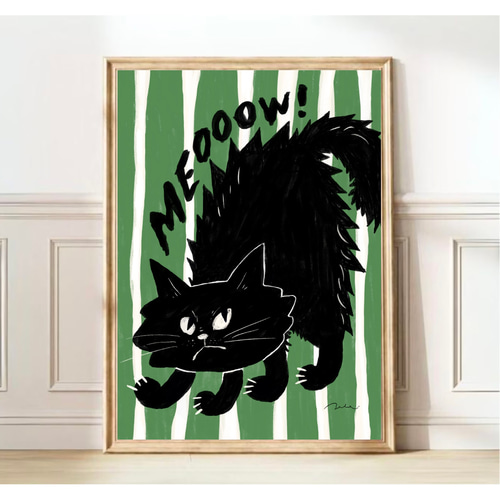 - 美術品・アンティーク・コレクション > コレクション > 100部限定 アートポスター ウーゴロンディノーネ ミュージアムポスター 北欧 風 モダン アート ポスター【 Kuroneko meow 】グリーン :/084/黒