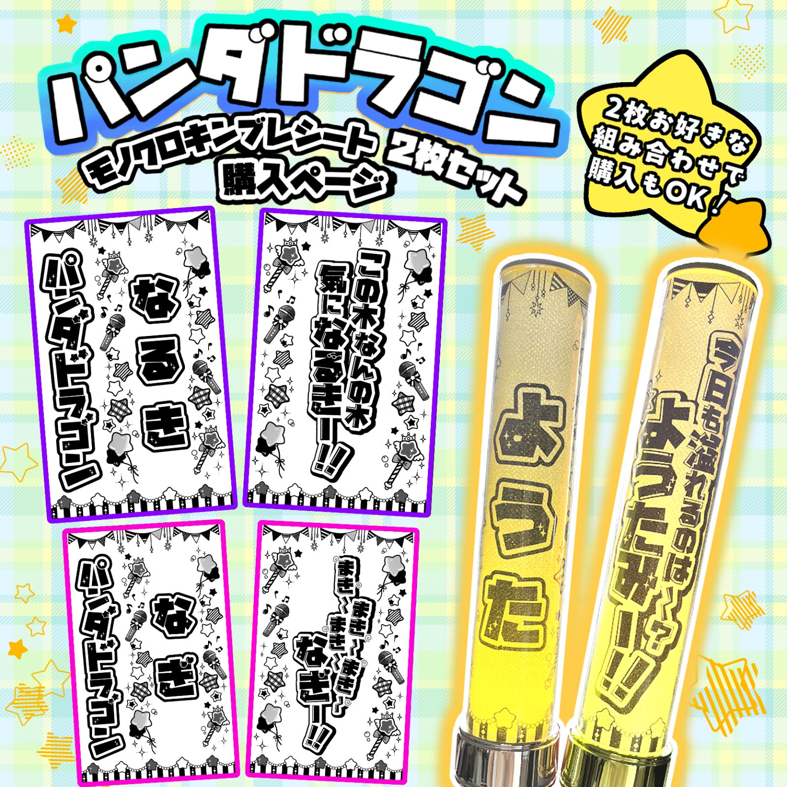 - タレントグッズ > アイドル > 【2枚重ね850円】キンブレシート ぱっち ⑅ パンダドラゴン オーダー P1 パンダドラゴン キンブレシート 2枚セット ぱっち ようた なるき たい