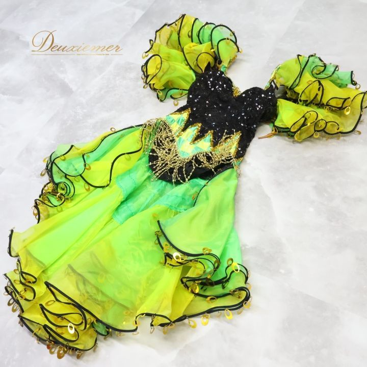 | メーカー名 | 47da04 | ブランド名 | 社交ダンスラテンドレス 黄緑×黒 |